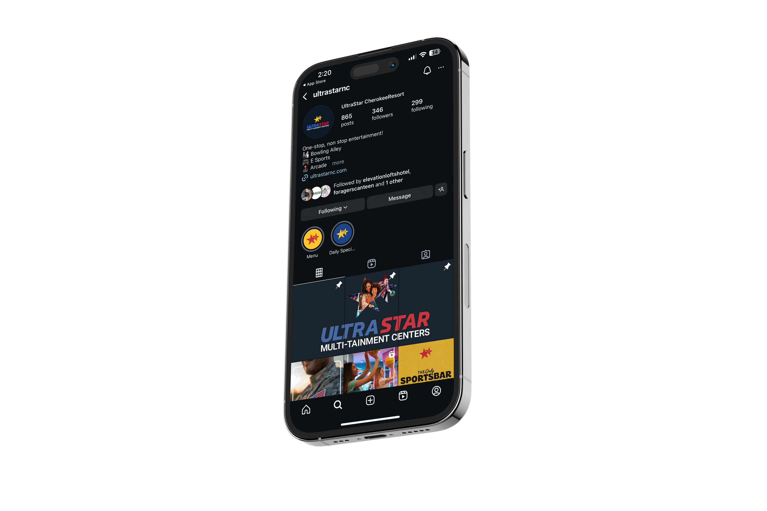 You’ll notice that our digital signage and social posts have a white border, or, frame. This became an essential graphic element through the course of our demographic study. I worked with UltraStar’s leadership to determine who their target audience is. Primarily, they want to attract families with children, couples, and - being just a few miles away from Western Carolina University - college age young adults.